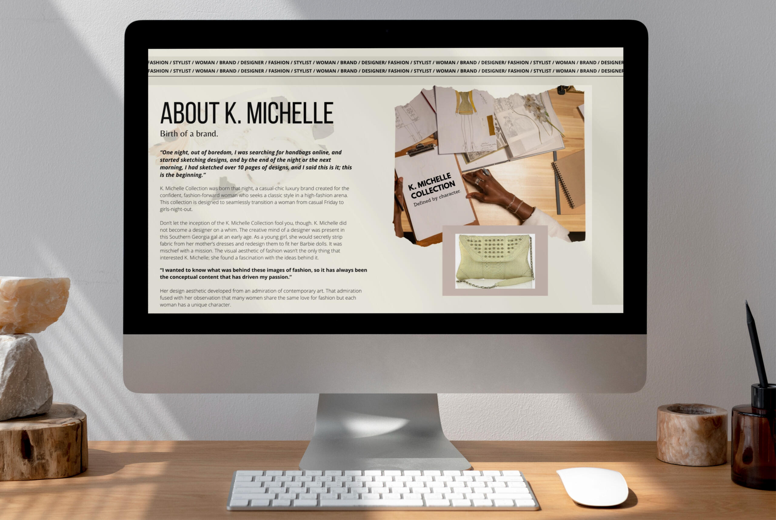 Fashion designer K. Michelle contacted me looking for a professionally written "about" page for her website. She wanted a bio that would all at once tell her story and announce her entry into the fashion industry with her debut line K. Michelle Collection.
